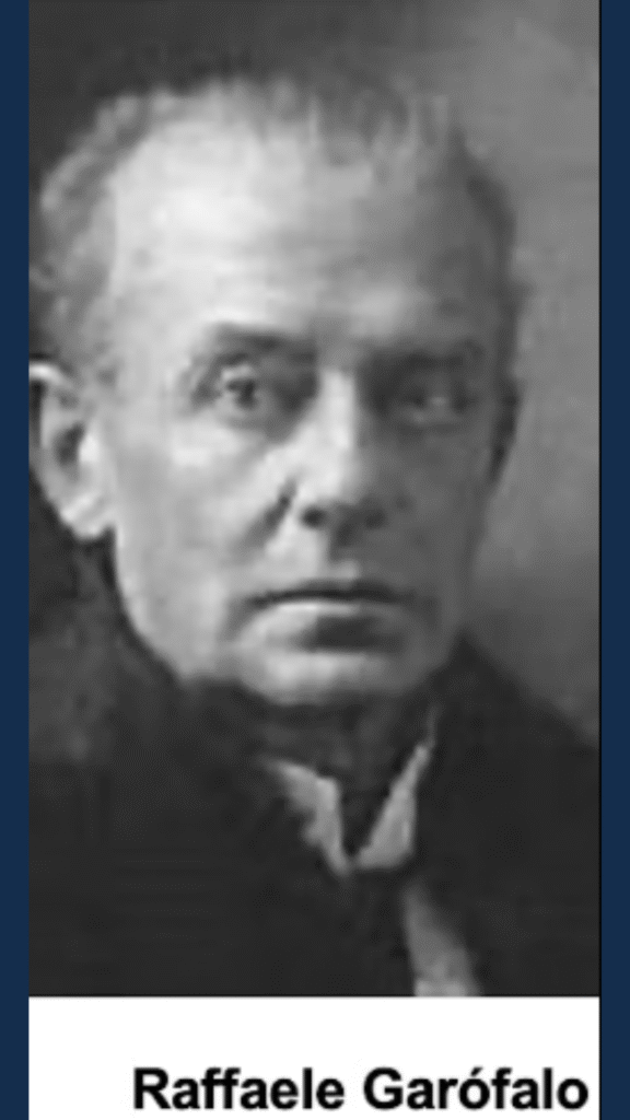 Raffaele Garofalo nasceu em Nápoles, em 18 de novembro de 1851, e faleceu na mesma cidade em 18 de abril de 1934. Foi um importante jurista e criminólogo italiano, representante do positivismo criminológico, conhecido à época como Nova Escola (Scuola Nuova). Considerado um dos nomes centrais na consolidação dessa corrente, Garofalo foi responsável por cunhar, em 1885, o termo “Criminologia”, no livro Criminologia: um estudo do crime, suas causas e da teoria da repressão, obra que se tornaria referência fundamental na área.